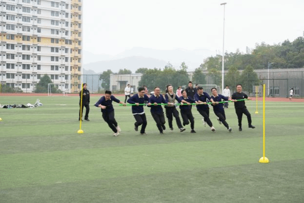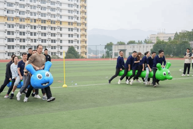 集体项目环节,同心鞋、步步为营、毛毛虫竞速、旋风跑四个项目点燃了全场热情。参赛队员们默契配合、协同作战,同心鞋项目中 8 人步调一致向终点迈进,步步为营项目里队员们紧握木杆交替前行,毛毛虫竞速和旋风跑项目更是展现了团队的速度与协作。赛场上,大家齐心协力、奋勇争先;赛场下,助威声、加油声此起彼伏,充分彰显了教职工们团结拼搏、积极向上的精神风貌。