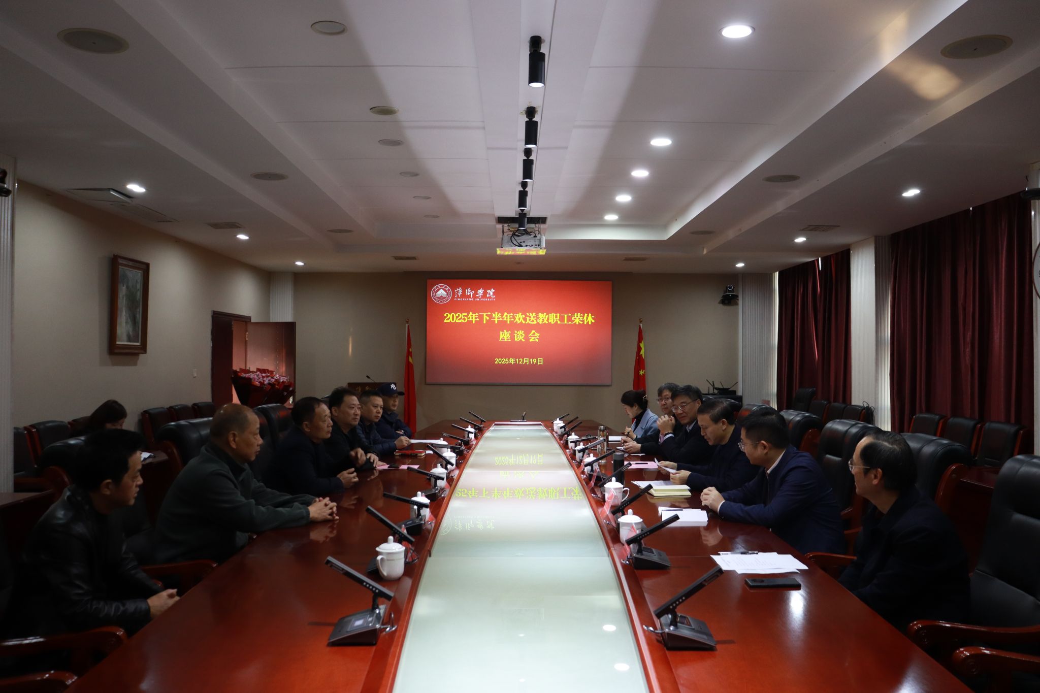 为弘扬尊师重教传统,致敬退休教职工的辛勤付出,12月19日我校在至善楼第一会议室隆重举行了2025年下半年教职工荣休欢送仪式,校领导邱晓辉、陈永国、吴代赦、王林清出席会议,2025年下半年荣休教职工代表和相关职能部门、二级学院负责人参加仪式,仪式由校党委副书记陈永国主持。